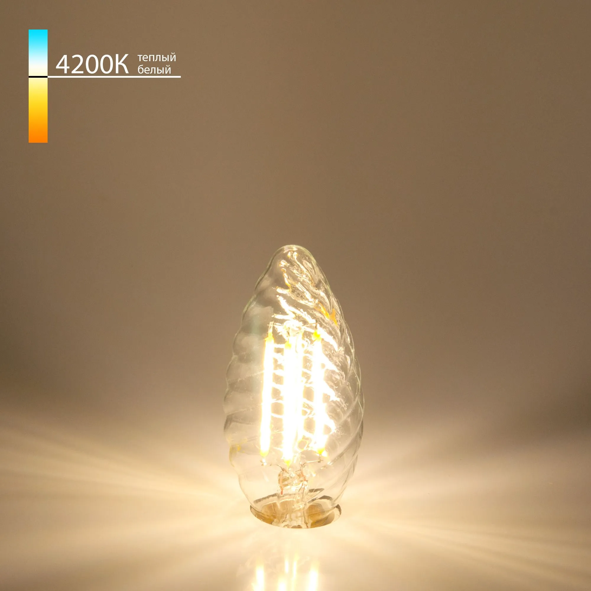 Артикул: BLE1414; Бренд: Elektrostandard; Серия: Свеча витая F; Общая мощность, W: 7; Питание: 170-240 В, 50 Гц; Угол рассеивания, град: 360; Электромагнитная совместимость: Да; Температурный режим: -20 ... +40; Тип цоколя: E14; Световой поток, Lm: 700; Цветовая температура, K: 4200; Индекс цветопередачи: >80; Срок службы светодиодов, ч: 50000; Материал: металл;стекло; Наличие поворотного механизма: 35; Умный дом: совместим с умным реле; Гарантия, мес: 24; Длина, мм: 35; Ширина, мм: 35; высота: 100